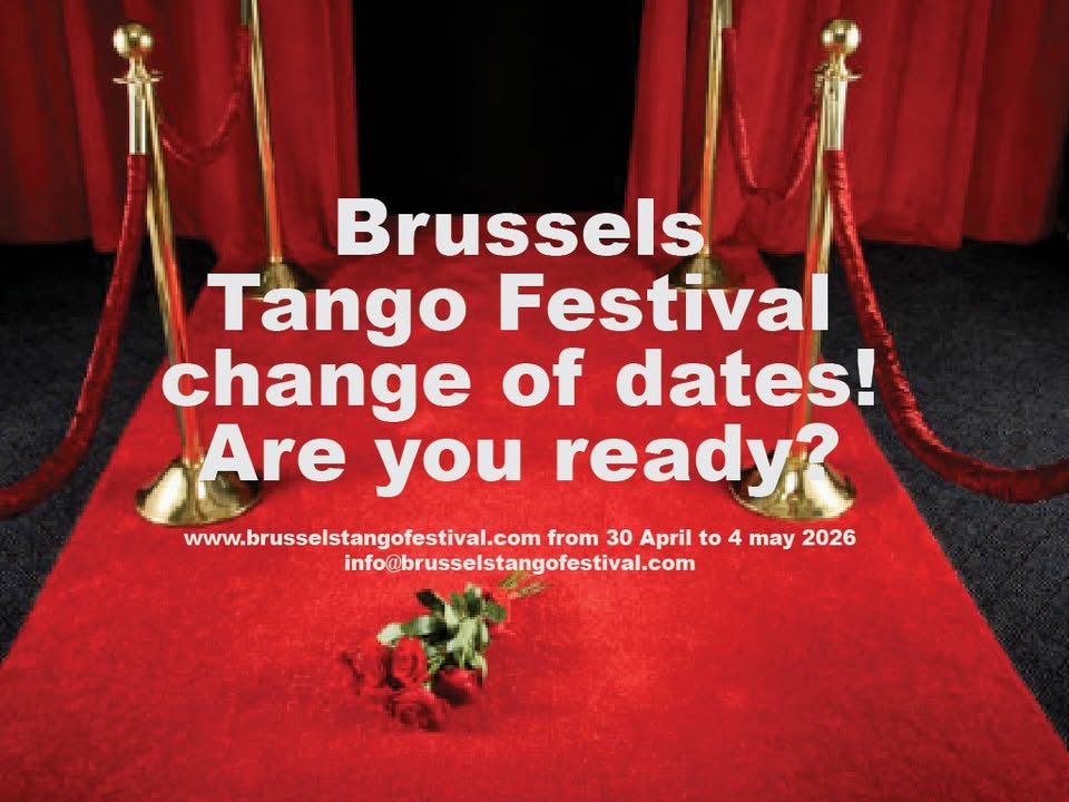 Very important! The Brussels Tango Festival 2026 will be from 30 april to 4 may 2026, in the heart of Europe with the best maestros (to be confirmed) and in the best places with wooden floor. Lets' dance in Brussels! Nathalie
