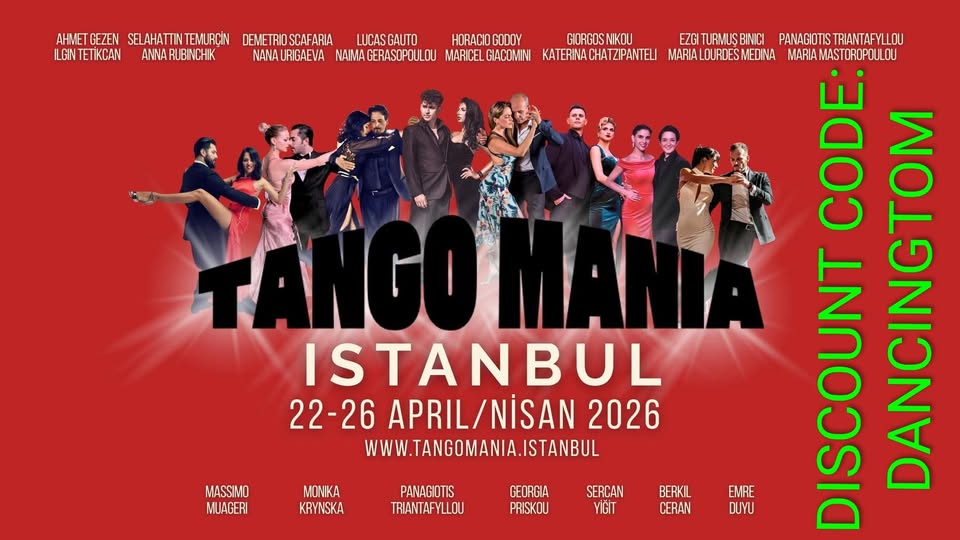 TANGO MANIA FESTIVAL ISTANBUL runs from 2026-04-22 to 2026-04-26. Festivals typically include workshops with visiting maestros, milongas every evening, and sometimes live orchestra performances and shows.