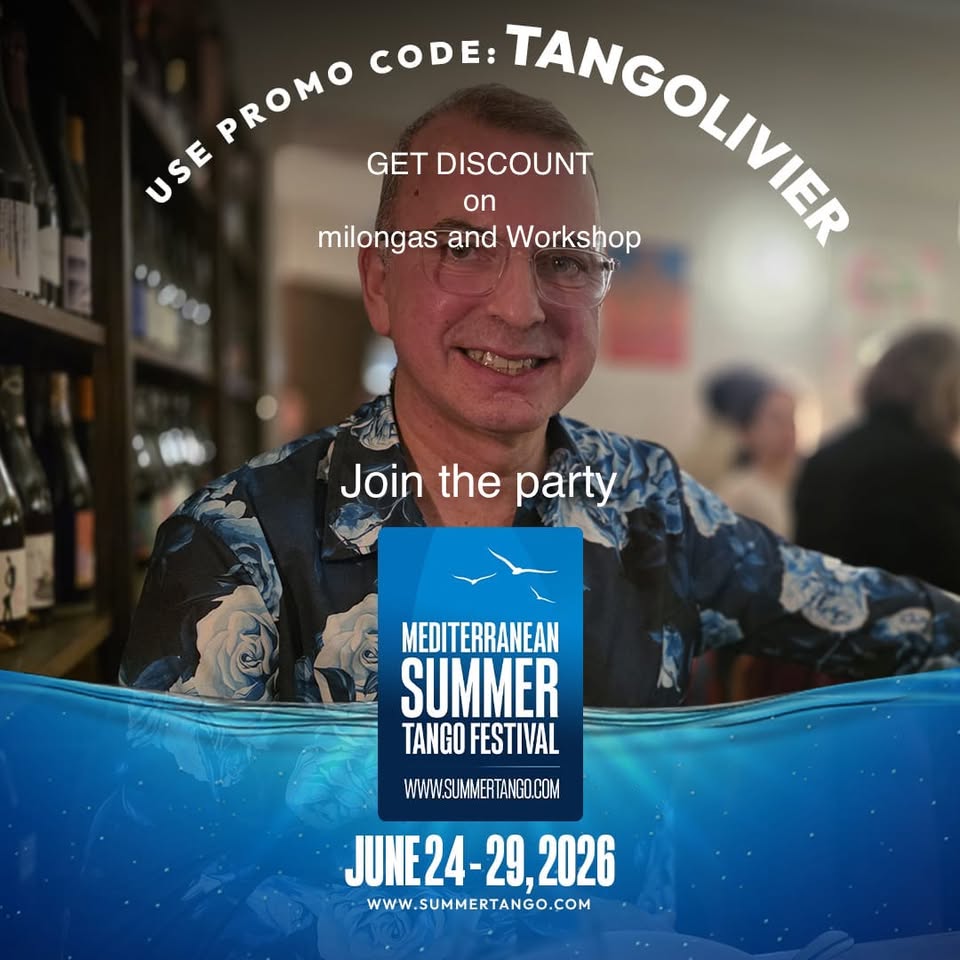 MSTF Mediterranean Tango Festival runs from 2026-06-24 to 2026-06-29. Festivals typically include workshops with visiting maestros, milongas every evening, and sometimes live orchestra performances and shows.
