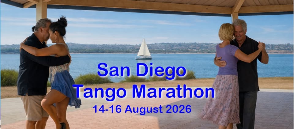 San Diego (Summer) Tango Marathon runs from 2026-08-14 to 2026-08-17, typically offering 20-30+ hours of social dancing across multiple milonga sessions.