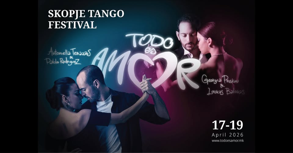 Todo Es Amor - Skopje Tango Festival 2026 starts at 3:00 PM at Museum of the Macedonian Struggle in Skopje.