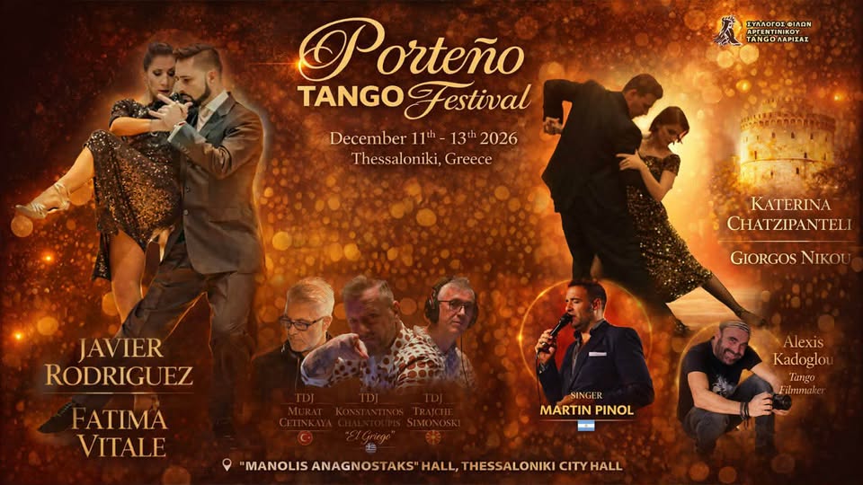 PORTENO TANGO FESTIVAL with JAVIER RODRIGUEZ & FATIMA VITALE / 11-13 DECEMBER 2026 / THESSALONIKI starts at 5:00 AM to 5:00 PM at Δημαρχειο Θεσσαλονικης in Thessaloniki.