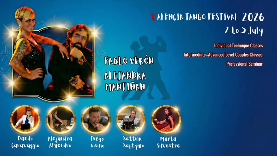 Valencia Tango Festival 2026, July 2-5 in Valencia, Spain.
